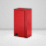The fire extinguisher holder features a magnetic closure and the lid is pre-drilled for a security seal. It can be wall-mounted or mounted on a stand.